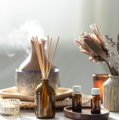 - 원리: 아로마테라피는 식물에서 추출한 에센셜 오일의 향이 후각을 통해 뇌의 변연계(감정·기억 담당)에 작용 → 신경전달물질 분비 조절, 향기가 신경전달물질(세로토닌, 엔도르핀 등)의 분비를 촉진해 긴장 완화 및 기분 안정 효과.