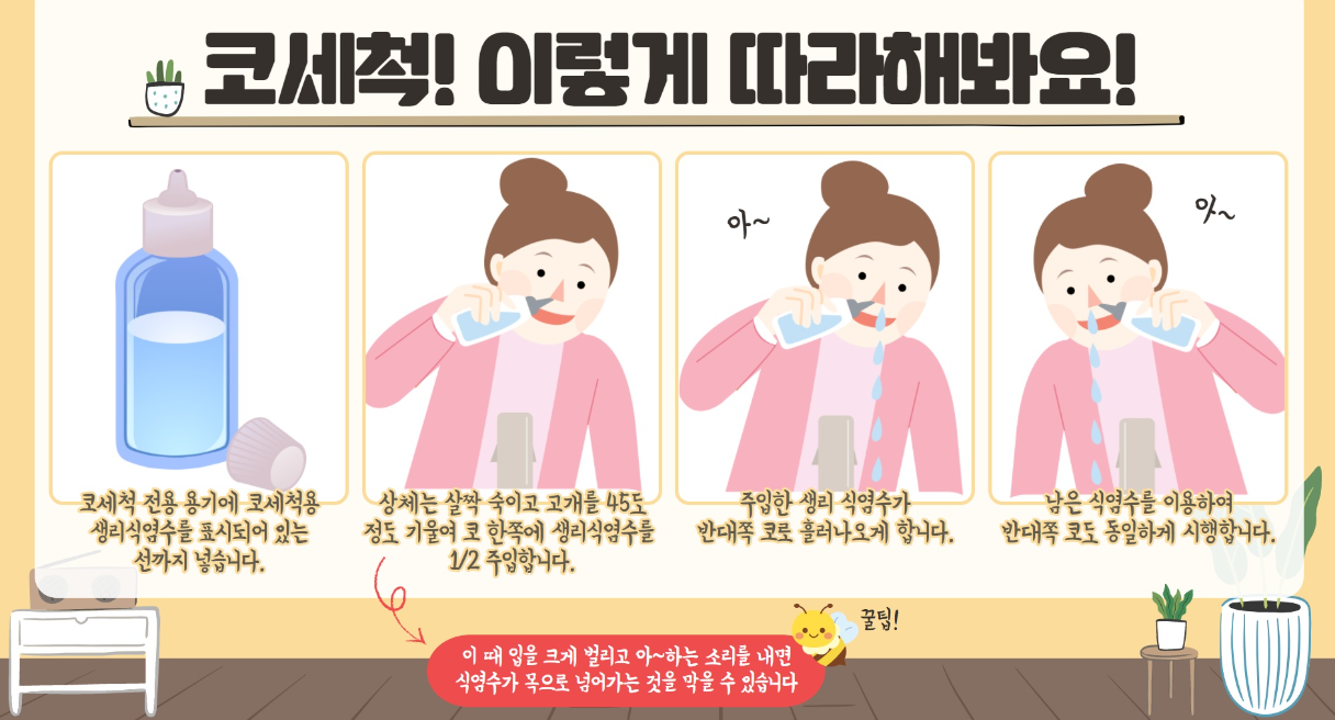 - 세척 후 비강 스프레이(의사가 처방한 경우)를 사용하는 것도 병행 가능