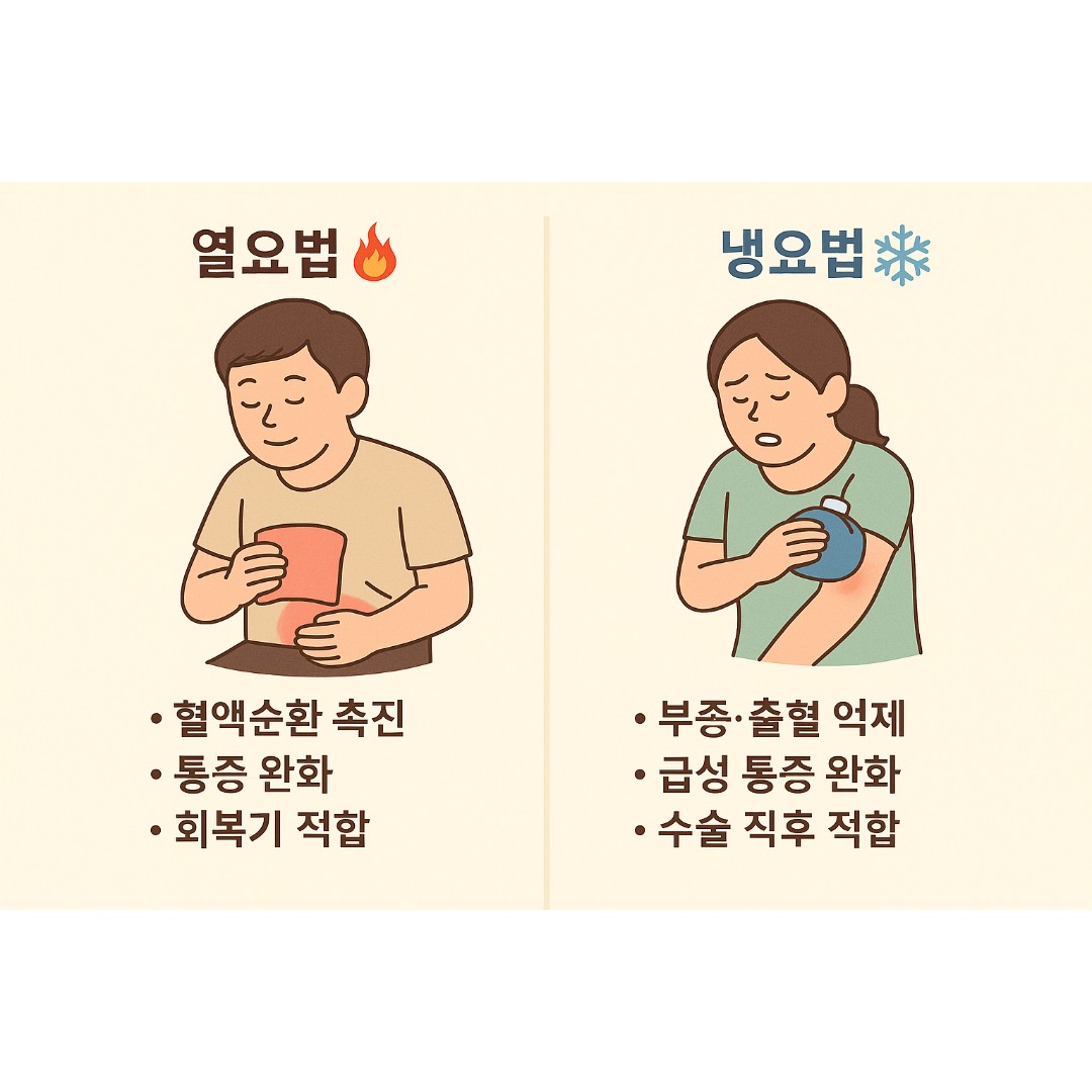 | 구분 | 냉요법(❄️) | 열요법(🔥) |